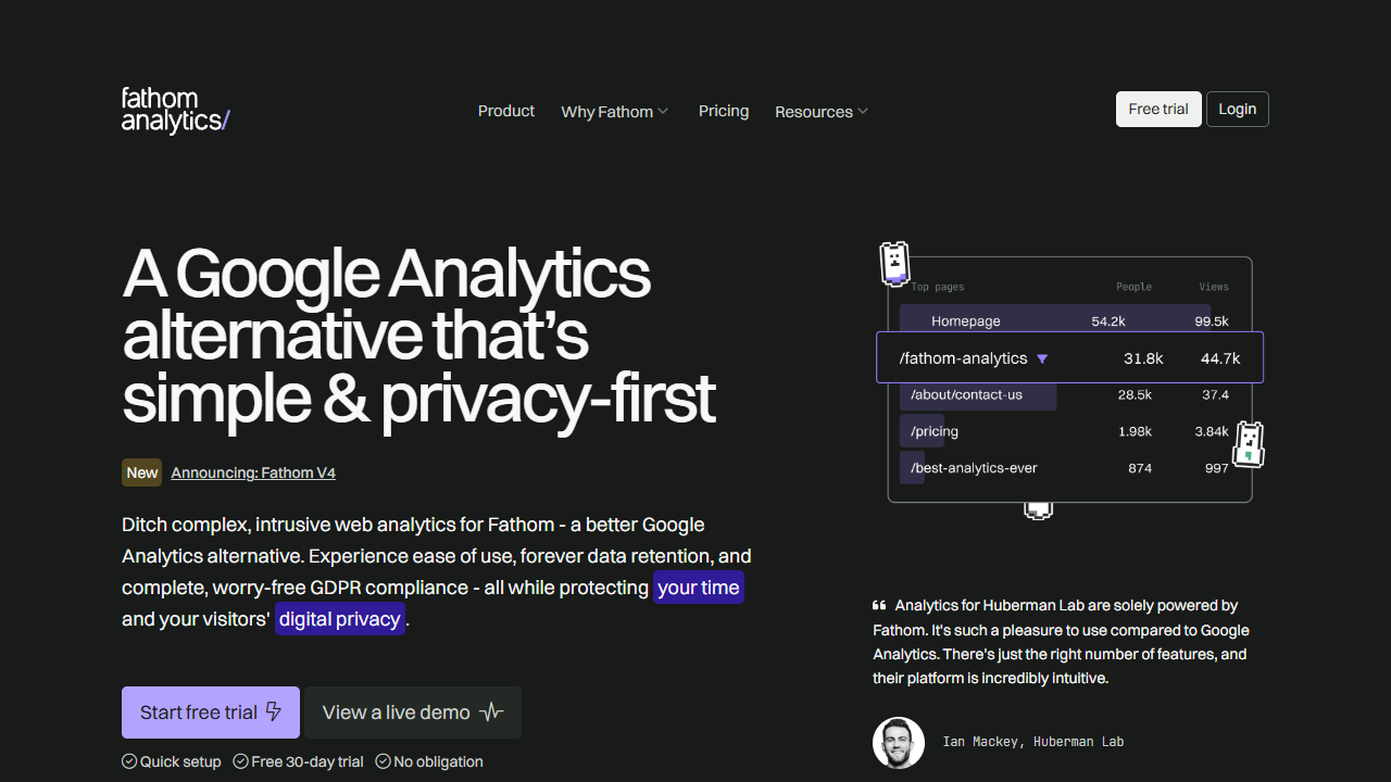- Value Proposition Clarity: They directly contrast themselves against an "enemy" (Google Analytics), making the choice incredibly easy for their target persona.