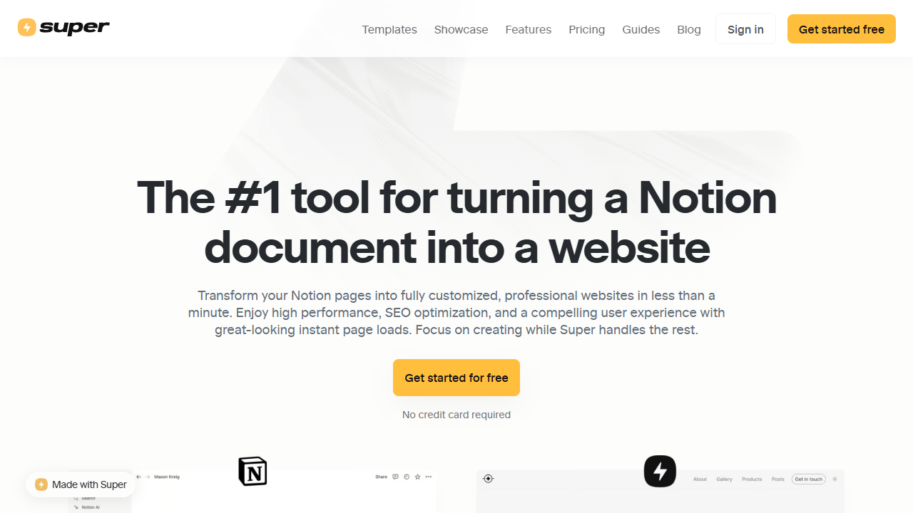 Super turns Notion pages into websites, and their landing page is a masterclass in clean, modern typography.